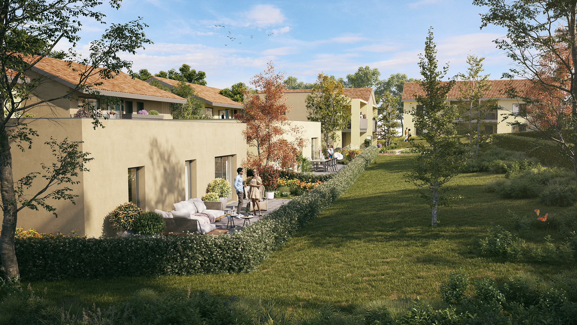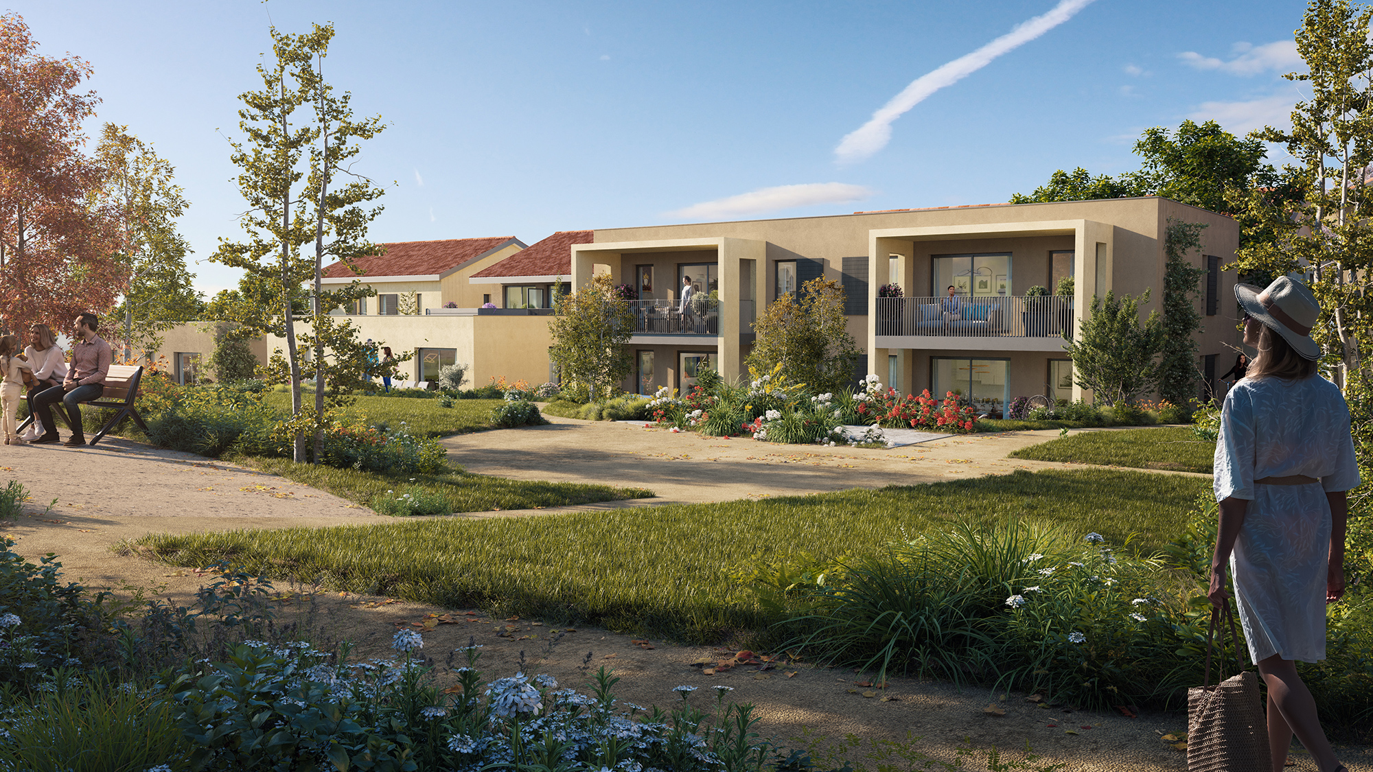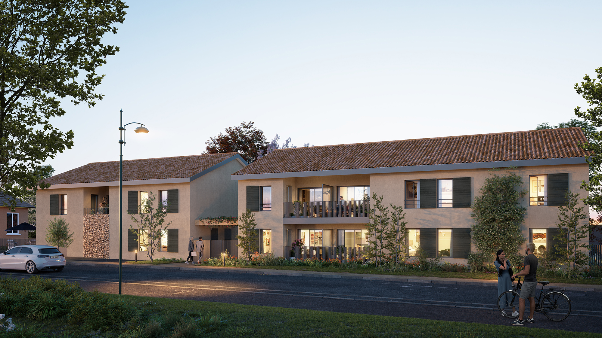 Idéalement située à 200 mètres du coeur village, Les Hauts de Saint-Roch est un programme immobilier neuf combinant subtilement facilité de vie quotidienne et charme naturel d’un lieu préservé. Dès votre arrivée, les façades douces encadrant le porche d’accès à la résidence sonnent comme une invitation à la détente.